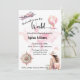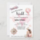 Fêtons le prochain grand voyage ou voyage dans le monde avec une fête de départ. Doté d'un avion rose, d'un globe de style vintage et d'un rose de boussole, le design est établi sur une carte du monde couleur aquarelle douce dans les tons rose pâle et acajou. Une façon fantaisiste et réconfortante pour les invités invitations lors de votre fête d'adieu avant de partir pour la grande aventure.