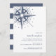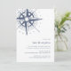 L'invitation à la répétition chic côtière présente une illustration vintage de rose de compas dessinée à la main, avec vos détails de dîner de répétition en bleu marine classique. Parfaits pour les répétitions et célébrations de plage, d'été ou nautiques, ces invitations de style côtier s'inversent à de larges bandes bleues et blanches.