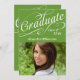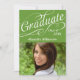 Texte tourbillonnant blanc, tourbillonnant et curling autour avec "diplômé", pour annoncer la grande réussite. Whimsical et fantaisiste avec le mot Celebrate au dos avec texte d'événement personnalisé pour vos invités. Copyright © www.CustomInvitesOnline.com