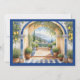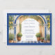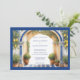 Carte de mariage avec vue sur l'arche méditerranéen de la côte amalfitaine en Italie, avec des carreaux bleus, un citron et un cadre bleu.