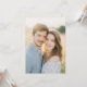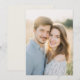 This wedding invitation features a warm, intimate design with two individuals standing closely together in an outdoor setting. The color palette is dominated by soft golds and beiges from the natural lighting, complemented by the man's light blue shirt and the woman's floral-patterned top. The photographic art technique captures a candid, realistic moment, emphasizing authenticity and emotional connection. The serene and romantic aesthetic creates a mood of warmth and affection, making it perfect for celebrating love and togetherness on your special day.