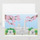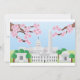 Points de repère de Washington DC avec des fleurs de cerisier contre la carte d'illustration de ciel bleu et d'invitation de dessin