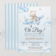 Celebrate your baby boy with this adorable watercolor baby shower invitation featuring a cute teddy bear pilot flying a blue airplane surrounded by soft clouds and little stars. The “Oh Boy!” theme and pastel blue color palette make it perfect for boy baby showers, gender reveal parties, or welcome baby events. Fully editable and easy to personalize, this design brings a sweet and charming aviation touch to your celebration.