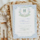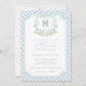 Invitation Watercolor Blue 1st Birthday Monogram Crest Party
