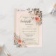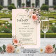 Elegant bachelorette weekend itinerary invitation featuring blush pink watercolor roses on a retro chic tan and peach background. On the back is an easily customizable QR code template (you can also delete it if you don't need it)