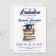 Celebrate your graduate's hard work and academic achievements with this elegant watercolor books and cap graduation celebration invitation. Featuring a beautifully painted stack of classic textbooks topped with a traditional graduation mortarboard and a striking red tassel, this design perfectly captures the essence of scholarly success. Delicate watercolor splashes add an artistic, modern touch to the classic navy blue typography. Whether you are hosting a high school graduation party or a college commencement celebration, this book-themed graduation invite sets the perfect sophisticated tone for your memorable event.
