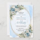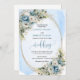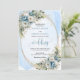 Set the tone for an unforgettable celebration with this elegant watercolor wedding invitation, beautifully designed with dusty blue florals, soft white peonies, and delicate eucalyptus