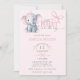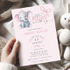 Invitation Watercolor Elephant Pink Bow Baby Girl Shower
