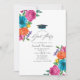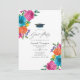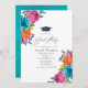 Invitation de la fête de graduation de la fiesta florale aquarelle avec typographie manuscrite et lavage à l'aquarelle turquoise inversé conçu pour être rapidement et facilement customisé aux détails de votre événement.