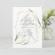 Faire-part de mariage de verdure boisée aux herbes sauvages avec cadre géométrique doré personnalisable selon vos spécificités.