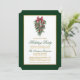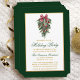 Élégant script de calligraphie Aquarelle Pins Végétation hivernale avec bow de ruban rouge bordeaux ornements de Noël, cônes de pin et baies blanches Carte de fête de Noël - Gold et Green Text