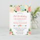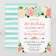 Invitation Watercolor Pink and Mint Flowers 21st Birthday