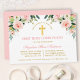 Elegant Watercolor Pink Blush White Floral First Holy Communion Invitation includes pink roses, white flowers and greenery leaves. Gold Cross.
