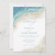 Cet élégant faire-part de mariage côtier est décoré d'une scène de plage aquarelle peinte à la main dans le coin avec des vagues de l'océan qui tapissent sur le bord de mer, et de calligraphie manuscrite avec des polices modernes et élégantes.