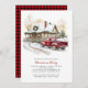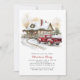 Watercolor Rustic Country Christmas Party Invitation - Préparez la scène pour un rassemblement de vacances confortable avec ce charmant design rustique. Un cabine de campagne baisé à la neige scintille avec un décor festif, tandis qu'un pick-up rouge vintage attend devant, prêt pour les aventures de vacances. Une couverture de neige fraîchement tombée complète cette scène hivernale pittoresque, parfaite pour inviter amis et famille à célébrer ensemble la magie de la saison.
