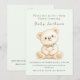 Perfect for neutral or boho-themed baby showers, this editable design features soft watercolor tones and a charming illustration of a teddy bear.