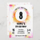 Découvrez la joie d'une journée spéciale enfant avec cette délicieuse invitation avec un arrière - plan dynamique en aquarelle dans des tons joyeux rose, orange et jaune. Le chiffre noir "8" en gras occupe le devant de la scène dans un cercle blanc immaculé, attirant instantanément l'attention sur le jalon célébré. Les polices joueuses améliorent le design, ajoutant un élément de plaisir et d'excitation. Cette invitation captivante est parfaite pour tous ceux qui souhaitent fêter l'anniversaire d'un enfant dans le style, ce qui en fait un choix irrésistible pour votre prochaine planification de fête ! 🎉 🌟 Et si vous cherchez des fournitures de soirée assorties ou d'autres produits coordonnés pour compléter cette invitation, n'hésitez pas à me contacter ! Faisons de votre célébration un moment vraiment mémorable. 🎁 😊
