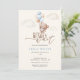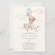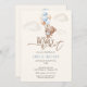 Watercolor We Can Bearly Wait Baby Boy Shower Invitation. Celebrate your upcoming arrival with this adorable baby shower invitation! Featuring a sweet watercolor teddy bear floating amongst fluffy clouds with a bouquet of pastel dusty blue balloons, this design captures the excitement of a new chapter. The heartwarming phrase 'We Can Bearly Wait' perfectly complements the theme, making it an ideal choice for a baby boy shower. The soft color palette of creams, blues, and browns creates a gentle and inviting atmosphere for your special celebration. This invitation is designed to delight your guests and announce the joyous occasion with charm and style.