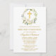 Elegant Watercolor White Floral Wreath First Holy Communion Invitation includes white roses, hydrangeas and greenery. Gold Cross.