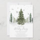 Cette invitation de fête moderne est un choix merveilleux pour votre événement. Doté d'illustrations d'aquarelles vertes d'arbres forestiers et de flocons de neige en faux feuille d'argent. La police de script de calligraphie à la mode est associée à un serif classique pour un look chic. Utilisez les outils de modèle en ligne pour personnaliser cet invitation unique pour votre dîner de Noël en famille, vos fêtes de fin d'année ou votre fête de Noël au bureau. FACTURE D'ARGENT NON RÉELLE