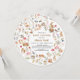 Delightful watercolor woodland baby shower invitation featuring adorable forest animals—bunnies, hedgehogs, squirrels, deer, bears, birds—in a whimsical round circle with mushrooms, berries, florals, leaves, and soft foliage on clean white background. This enchanting gender neutral design brings magical nature vibes to your baby shower! Soft hand-painted style with elegant gold text for easy personalization: honoree's name, date, time, location, RSVP details. Perfect for Boho forest-themed celebrations or cozy woodland nurseries. High-quality printable invite—customize now for a charming event!