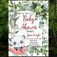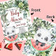 Cette belle aquarelle est ornée d'un adorable ours de Panda qui profite d'une grande tranche de pastèque assis parmi les feuilles tropicaux dans la jungle. Il dispose d'une variété de palettes de couleurs vertes, noires et roses avec un mélange de belles polices décoratives. L'invitation est entièrement personnalisable, vous pouvez ainsi ajouter vos propres touches personnelles.