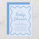 Invitation Wavy moderne Curvy Retro Boy Dusty Baby shower ble