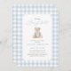Invite friends and family to share in the joy of your little one's arrival with this elegant blue gingham teddy bear baby shower invitation.