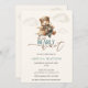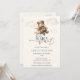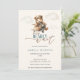 We Can Bearly Wait Teddy Bear Airplane Baby Shower Invitation. Get ready for take-off with this adorable watercolor invitation! Featuring a charming bear pilot in a vintage aviator outfit, soaring through fluffy clouds in a small airplane, this design is perfect for announcing a baby shower. The playful 'We Can Bearly Wait' text adds a sweet touch, making it a memorable way to invite guests to celebrate. The soft, muted color palette and gentle watercolor style evoke a sense of nostalgia and warmth, creating an inviting atmosphere for your special event. Ensure your guests have all the details with plenty of space for event information, making it easy for everyone to join the celebration.