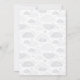 Design features teddy bear wearing brown hoodie and sitting in a hot air balloon, clouds and stars. Text says "we can bearly wait".