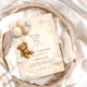 Soft gingham, scattered golden stars, and a scalloped heirloom frame set the sweetest scene for this “We Can Bearly Wait” design. A cuddly teddy bear holding a delicate balloon sits among dreamy clouds, creating a warm and timeless nursery-inspired aesthetic. The gentle blue and beige palette makes it perfect for a baby boy celebration while still feeling soft and classic. Cozy, charming, and effortlessly elegant — a beautiful way to gather loved ones before baby arrives.