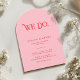 This modern retro pink and red we do wedding invitation features a bold and stylish arch layout. The soft pink background is paired with rich red typography to create a clean retro modern look. The large “We Do” headline adds a confident and contemporary feel while keeping the design elegant and simple.