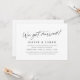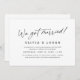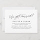 This modern yet elegant wedding elopement party invitation features a script greeting that says "We got married!" and classic typography. All colors in this design are customizable. You can further customize this design by adding a photo and/or additional text to the back side.