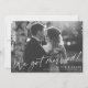 This modern yet elegant wedding elopement announcement features a script greeting that says "We got married!", classic typography, and a "full-bleed" horizontal photo. All colors in this design are customizable, even the script. You can further customize this design by adding another photo and/or additional text to the back side.