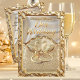 Invitation Wedding Cream Gold Swans Rings Gold Diamonds