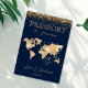 Modern and Elegant World Map Invitation Wedding Destination, like passport. Location tropical island