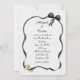 Black bow and ribbon frame with a pair of gold wedding rings on a soft textured white background