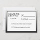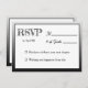 A simple, fun, modern RSVP card in black and white. On the front your guests can write the number of the guests and on the back they can pick their entrees.