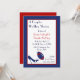 Amusants couples invitation wedding shower faite en bleu, rouge et blanc. Graphiques d'un cadre rouge et bleu, autour d'une zone de texte blanche, avec un talon bleu stiletto donnant un pied de football bleu et rouge. Le texte rouge et bleu est entièrement personnalisable pour personnaliser votre wedding shower. Idéal pour le couple de supporters de football.