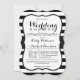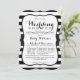 Elégant, à rayures blanches et noires, à rayures motifs wedding shower invitation avec des polices noires et des coeurs blancs sur le dos. Parfait invitation classe toute l'année pour le printemps, l'été, l'automne ou fiançailles d'hiver, couples wedding showers. Invitation en forme de crochet pour un look vintage élégant.