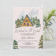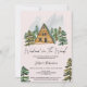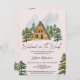 Planifiez le week-end de fête de bachelorette parfait et l'itinéraire pour un week-end dans les bois sur rose avec cabine de montagne rustique, ligne de montagne et pins verts avec un script de police moderne et cool.