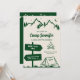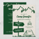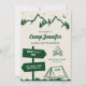 Modèle d'invitation d'itinéraire de fête de bachelorette de camp dessiné à la main fantaisiste en couleur verte. Tout le texte, la police et la couleur sont modifiables.