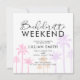 Cette invitation de week-end de célibataire tropical sous les palmiers est l'invitation parfaite pour vos invités ! Incluez un itinéraire de week-end pour partager tous les détails de la célébration de week-end chargée.