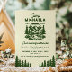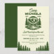 L'invitation de week-end de bachelorette en camping pour les retraites de cabine en plein air et les aventures dans les parcs nationaux donne le ton pour une escapade de filles de destination avec une esthétique de camping moderne-vintage parfaite pour les montagnes, les lacs et les voyages de glamping. Le devant présente une illustration de badge rétro en vert forêt profond sur un fond crème chaud avec le nom de camp de la future mariée, l'année d'établissement, les dates du week-end, le lieu et les détails de RSVP, ainsi que la légende ludique « dernier sentier avant le voile », ce qui facilite la personnalisation pour n'importe quelle aventure de bachelorette rustique. Utilisez-la pour annoncer un week-end en cabine, une célébration de randonnée et de kayak, des nuits de feu de camp cosy ou une retraite hors réseau avec votre équipe. Cette invitation inspirée de la nature se coordonne sans effort avec la signalisation, les faveurs et la décoration assorties si vous construisez un thème de camp cohérent, et la palette intemporelle se marie bien avec les flanelles, l'émaillage et la décoration extérieure. Idéale pour les rassemblements locaux et les week-ends de bachelorette de destination, elle convient aux styles populaires tels que le chic rustique, l'affiche de parc national, le camp de cottagecore et le classique