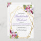 Des fleurs tropicales en aquarelle rose pâle et violet dans un double cadre géométrique doré présentent des éléments botaniques et des fioritures festives. Personnalisez cette invitation de week-end de jeune fille à marier avec vos propres couleurs et polices ou gardez cette typographie populaire telle quelle pour votre commodité. Mélangez et assortissez avec d'autres articles de cette belle collection de mariage.