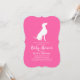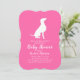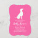 Inclure le grand frère ou la soeur en fourrure bébé dans la célébration avec cet adorable design de baby shower Weimaraner! Parfait pour un amoureux du chiot avec un bébé en route. Le Weimaraner se trouve à côté d'un adorable chariot vintage. Le rose en fait un endroit parfait pour une petite fille en route !