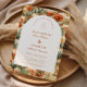 A refined western-inspired design featuring warm desert florals, cacti, and earthy botanicals arranged in a rich, painterly composition. The arched layout adds a timeless architectural feel, balancing the bold surrounding pattern with a clean, elegant center. Terracotta tones, soft neutrals, and muted greens create a grounded yet romantic palette—perfect for a modern desert or western celebration. Ideal for couples who want something unique, artistic, and effortlessly sophisticated.