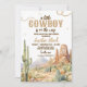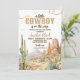 A western-themed baby shower invitation featuring a desert landscape, cacti, rope accents, and rustic typography. Designed for celebrating a little cowboy on the way, this invitation is ideal for western, cowboy, wild west, or country-inspired baby shower themes.