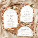 A refined western-inspired design featuring warm desert florals, cacti, and earthy botanicals arranged in a rich, painterly composition. The arched layout adds a timeless architectural feel, balancing the bold surrounding pattern with a clean, elegant center. Terracotta tones, soft neutrals, and muted greens create a grounded yet romantic palette—perfect for a modern desert or western celebration. Ideal for couples who want something unique, artistic, and effortlessly sophisticated.