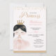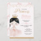 Whimsical Black Hair Ballerina Little Princess Invitation Anniversaire Sweet rose ballerina princess invitation à l'anniversaire d'une fille avec une jolie princesse cheveux noirs, couronne parties scintillant or Faux et fausse parties scintillant or. Cette petite invitation à l'anniversaire de princesse comporte également un motif arc sur le dos.
